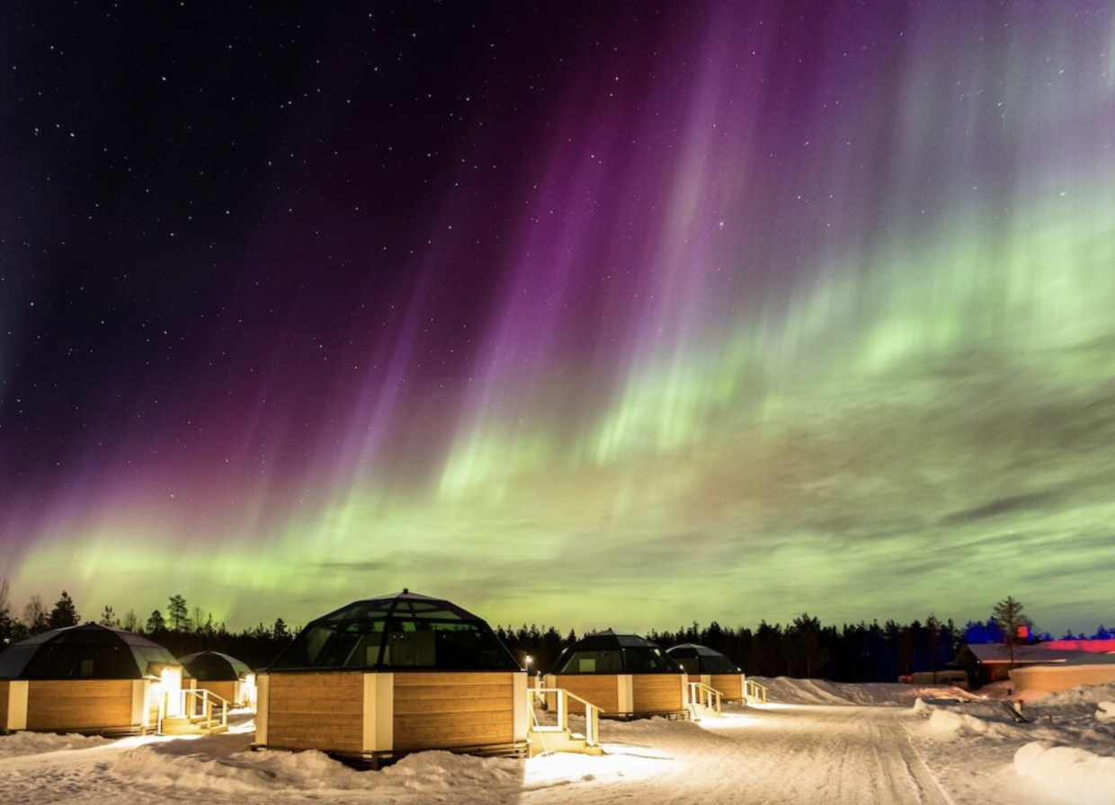 Arctic SnowHotel & Glass Igloos ligger ved polarcirklen, blot 30 minutters kørsel fra centrum af Rovaniemi. Igloerne har alle gulvvarme og tag af termoglas med udsigt til himlen og hotellet har et smart alarmsystem, der meddeler hvornår nordlyset er synlige.