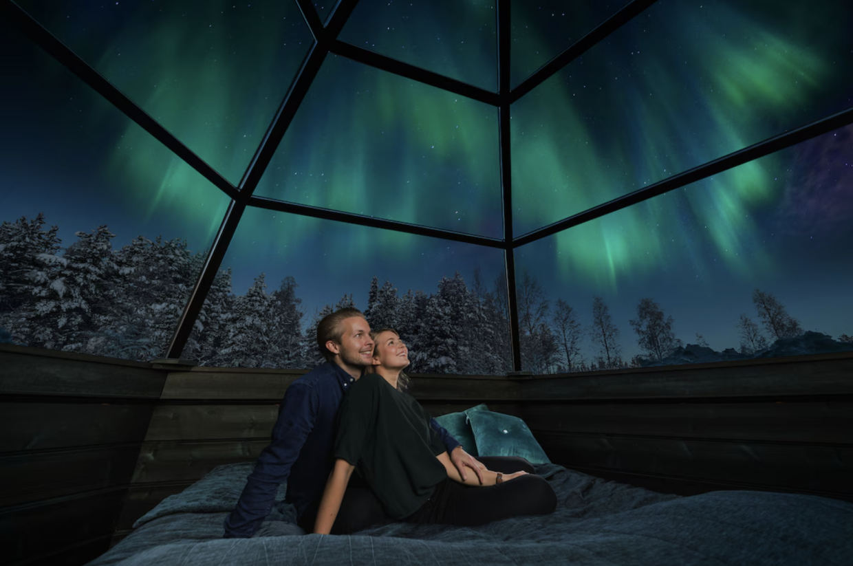 Arctic SnowHotel & Glass Igloos ligger ved polarcirklen, blot 30 minutters kørsel fra centrum af Rovaniemi. Igloerne har alle gulvvarme og tag af termoglas med udsigt til himlen og hotellet har et smart alarmsystem, der meddeler hvornår nordlyset er synlige.