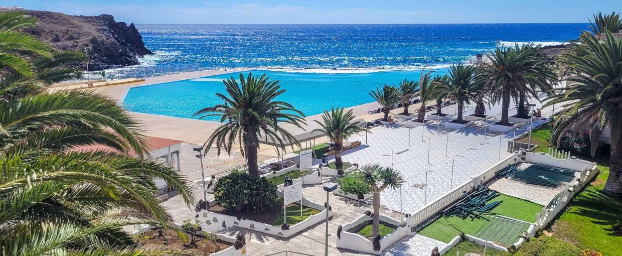 Hotellet har et stort, sydvendt poolområde omgivet af solstole og parasoller. Faktisk er det Europas største saltvandspool på hele 3.800 m2. Poolen ligger med direkte udsigt til havet, og du har derfor en fantastisk og uforstyrret udsigt til Atlanterhavet. Vil du bade i havet, er det muligt blot få hundrede meter fra hotellet.