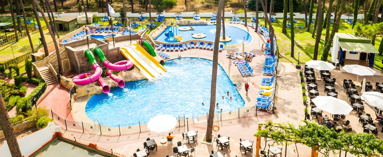Vil du nyde en dag på stranden, skal du blot gå gennem byen eller tage hotellets shuttlebus (mod gebyr). Den kører flere gange om dagen til Elvira-stranden. På hotellet finder du også et flot, stort poolområde med to pools, en børnepool med mindre rutsjebaner og mange liggestole, som du frit kan benytte. Til de mindste gæster er der både legeplads og et spillelokale.