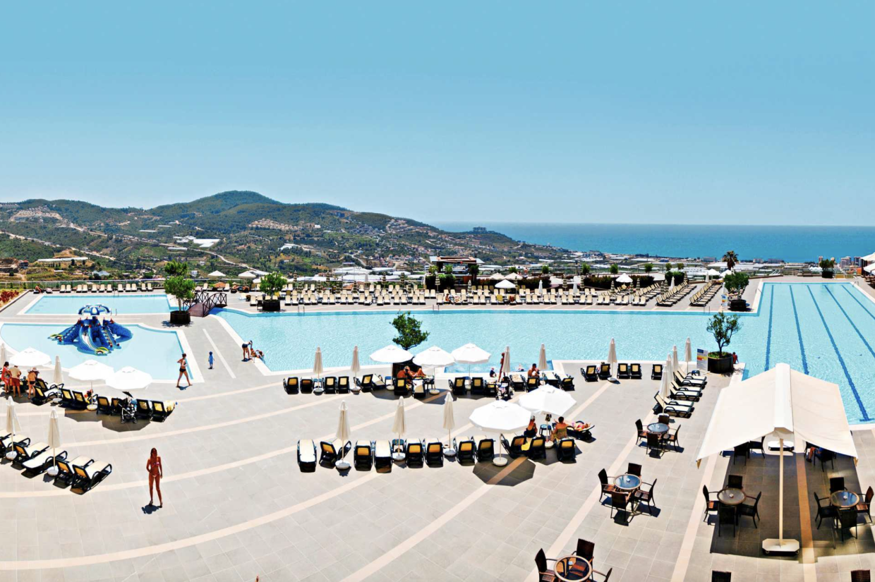 1 uge i Alanya med all inclusive for kun 3.743,- per person inkl. fly, 4-stjernet resort med pools, eget vandland og smuk udsigt!
