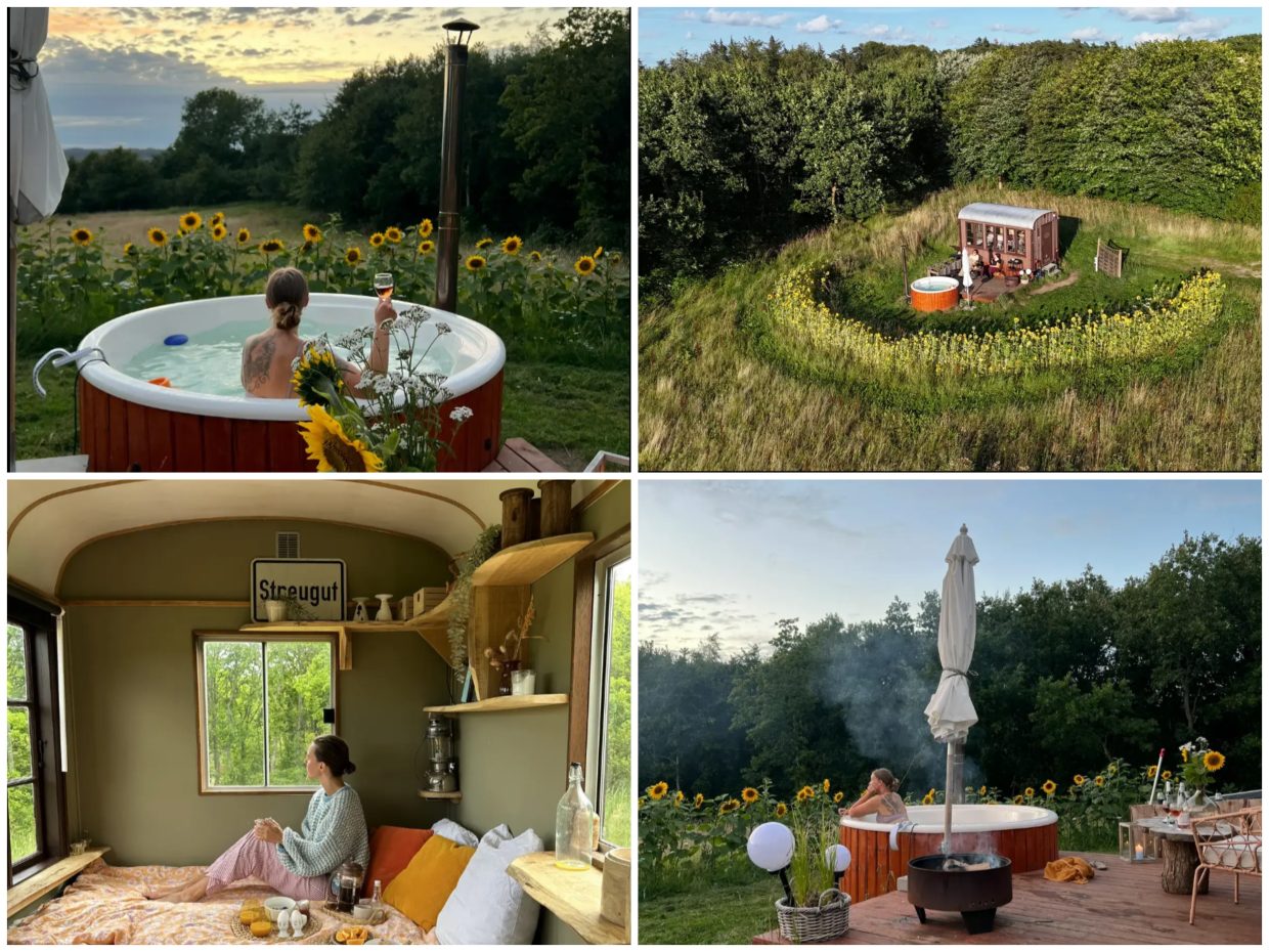 Glamping i en luksus-skurvogn med privat vildmarksbad og vidunderlig udsigt for kun 993,- per person inkl. morgenmad!
