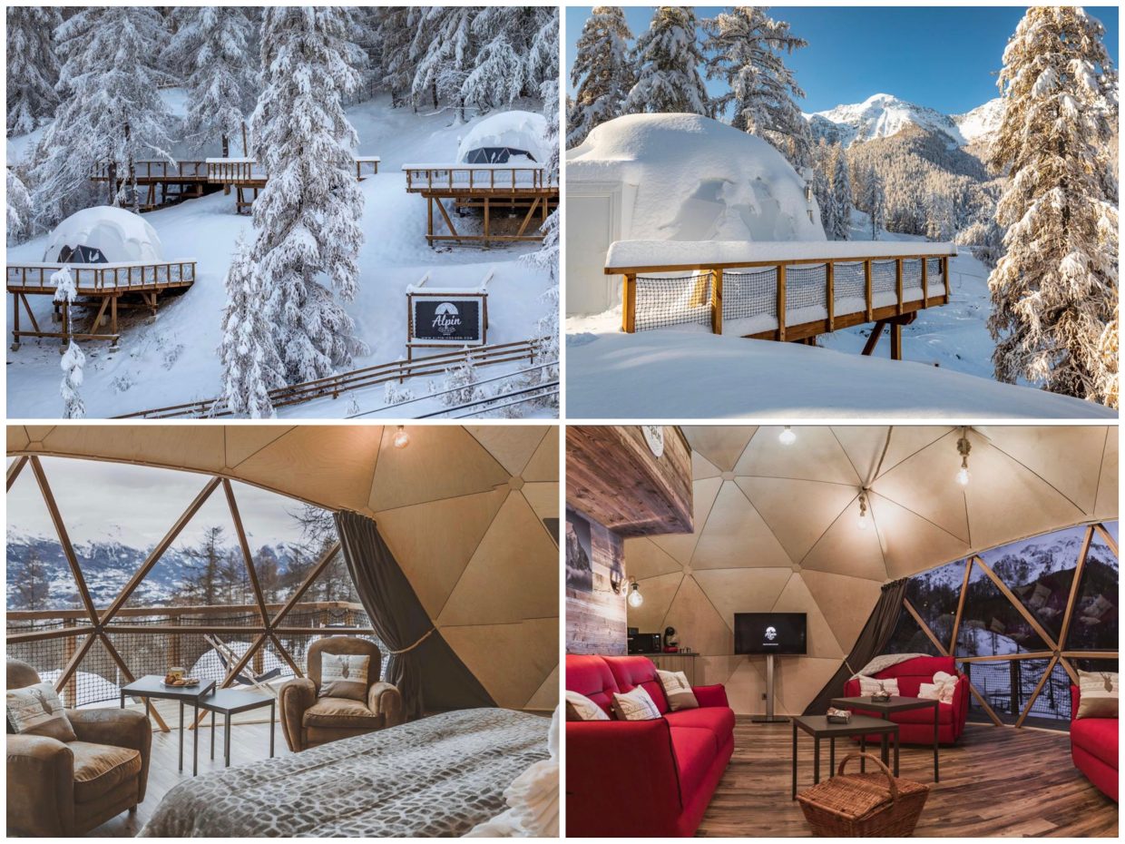 De smukke igloer i Alpin d’Hôme byder på en unik oplevelse i form af at falde i søvn under en flot aftenhimmel og vågne op til en klar blå himmel. I byen Les Orres finder du de moderne indrettede igloer, som er velegnet til 2-6 personer. Igloerne har separate soveværelser og et badeværelse. Der er også plads til alt dit skiudstyr, og desuden finder du skovarmere til at holde skistøvlerne varme og tørre til næste dag. Fra de store vinduer har du en direkte udsigt til det flotte bjerglandskab, og skiliften befinder sig blot 100 meter derfra. Hver morgen bliver morgenmaden leveret lige til døren, og når du vender tilbage fra pisterne senere på dagen, så serveres der eftermiddagssnacks til at stille den værste sult.